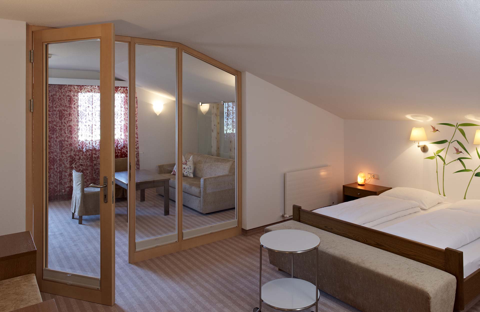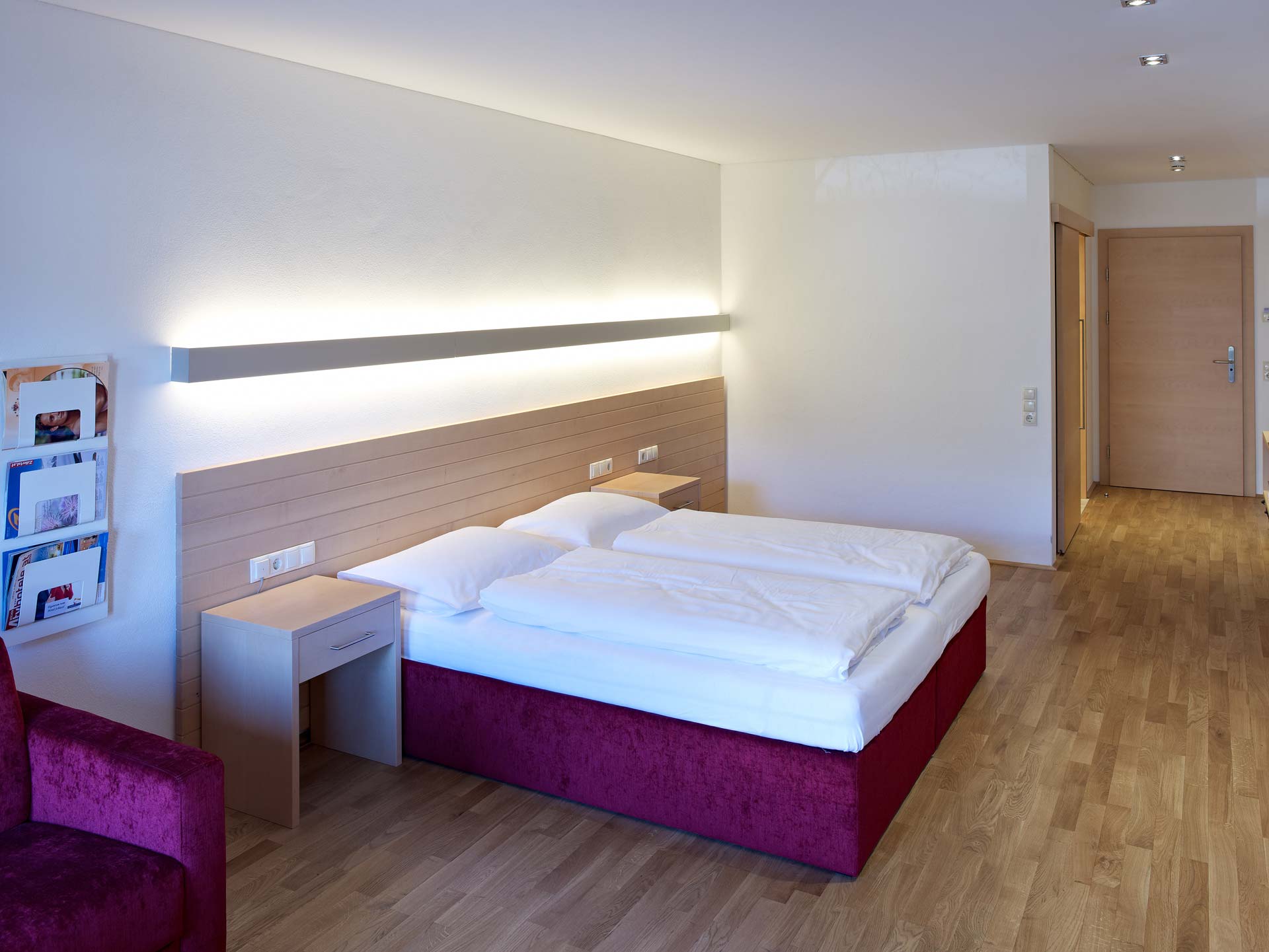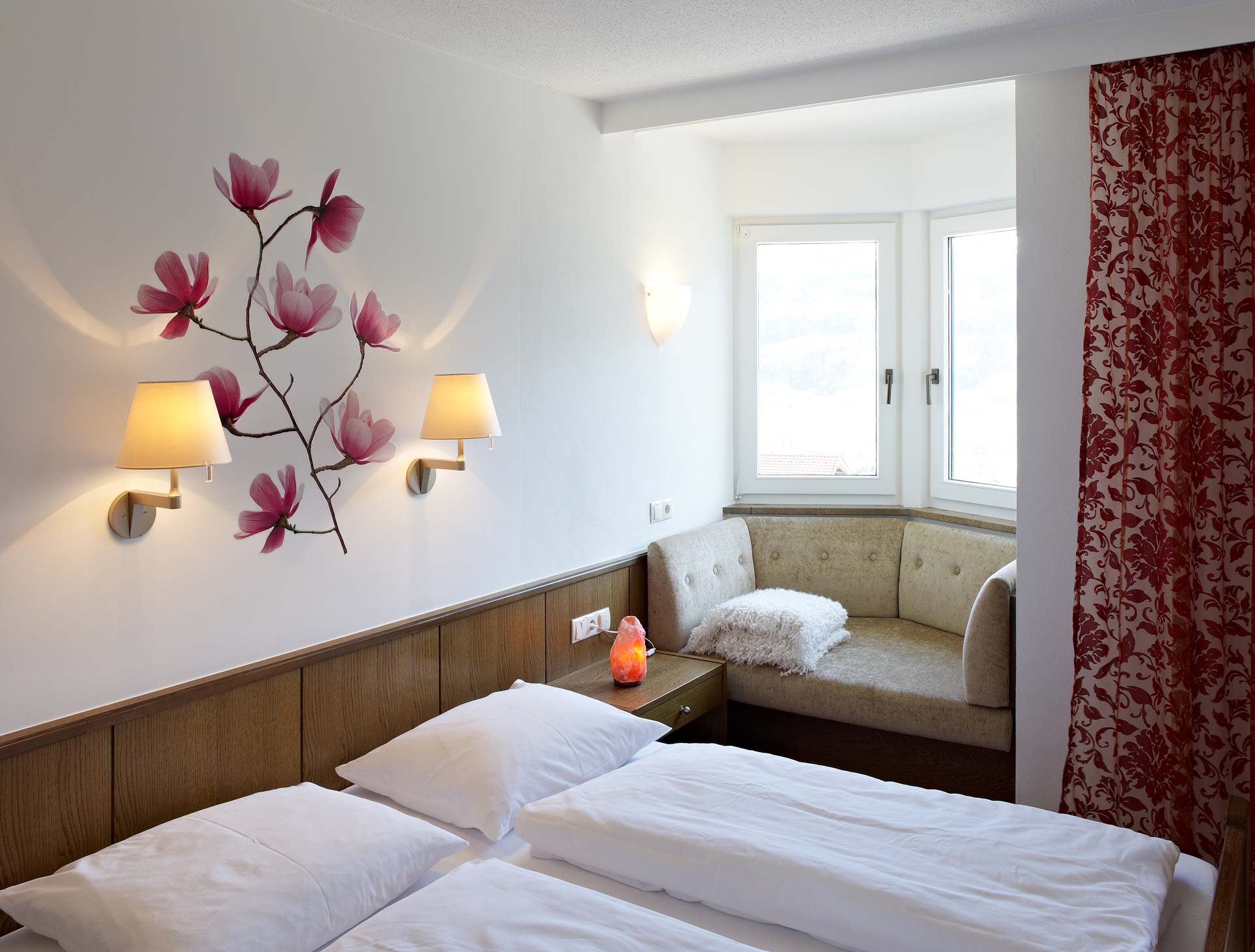 Ein 2-4-Bett-Zimmer erhielt zusätzlich eine individuell geplante und maßgefertigte Infrarot-Kabine in Zirbe.