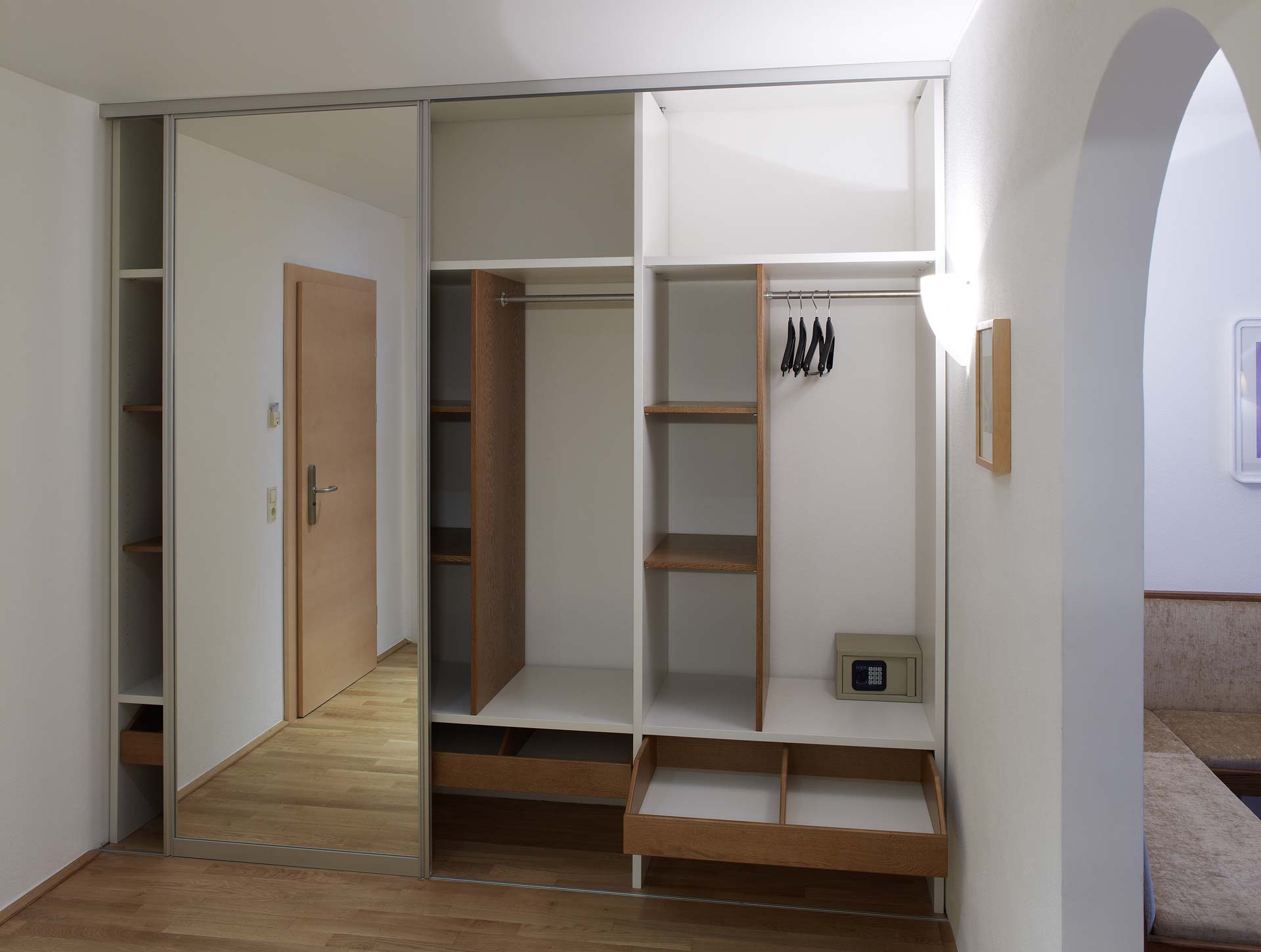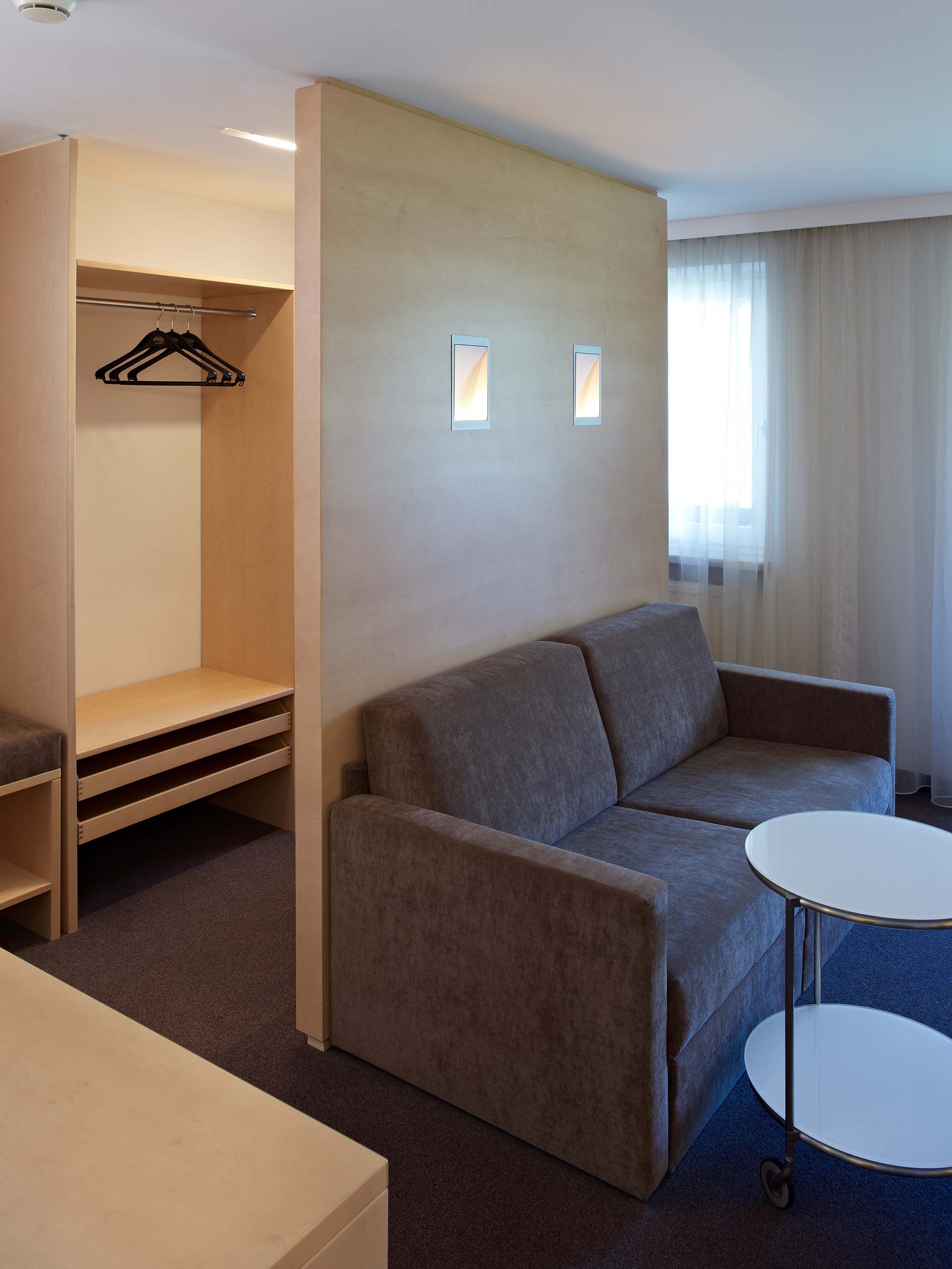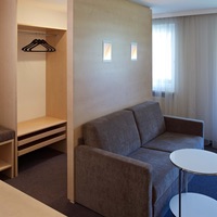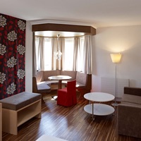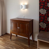 Neuinstallation der Elektroauslässe für Beleuchtung, elektronisches Schließsystem, Internet, Flach-TV, Minibar. Neue Wandbeschichtungen, neue Bodenbeläge: 6 Zimmer Parkett, 12 Zimmer Teppich. Neue Zimmereinrichtungen. Dabei wurde eine Kombination von Tischlerarbeit u. Möbelhandel gewählt. Die eingebauten Vorraumschränke blieben Bestand, allerdings wurden neue, raumhohe Schiebetüren in Spiegelglas eingebaut und die dunklen Schrank-Rückwände hell foliert. Bei den Bädern wurden die Waschbecken und bei den WCs die Muscheln erneuert und auf neue, wassersparende "Duo Spülungen" umgerüstet. Die H&S Installation samt Wand- und Bodenfliesen blieb Bestand. Die Badewannen wurden mit Echtglasabtrennungen und Haltegriffen versehen, alle Armaturen und Ablaufgarnituren wurden erneuert, alle Spiegel und Ablagen kamen neu und großzügig. Die Türzargen wurden hell beschichtet, Dichtungen und Niro-Drücker wurden erneuert.