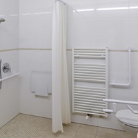Fünfter Bauabschnitt / 2 große barrierefreie Zimmer mit komplett neuen, speziellen Bädern und Einrichtungen wurden aus zwei bisherigen 3-Bettzimmer im Erdgeschoß gemacht. Die Zimmer sind auch belegbar von bis zu je 4 Personen ohne Handicap. Kosten pro Einheit komplett mit allen Abbrucharbeiten € 38.812,-; Bauzeit 3 Wochen