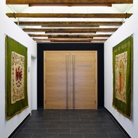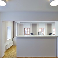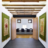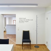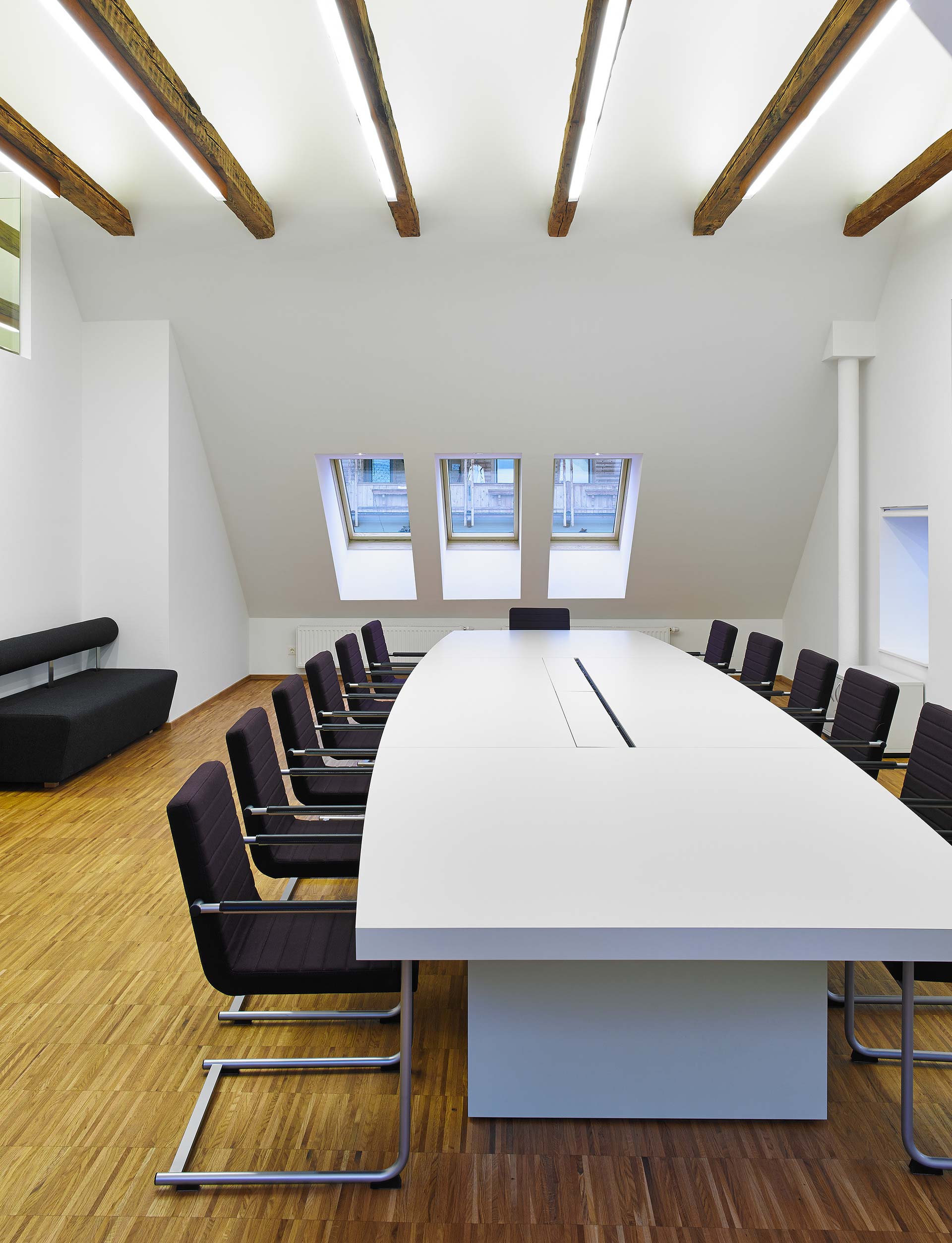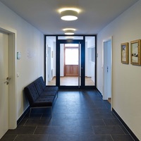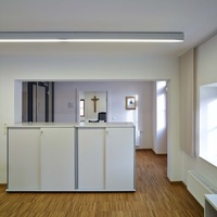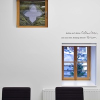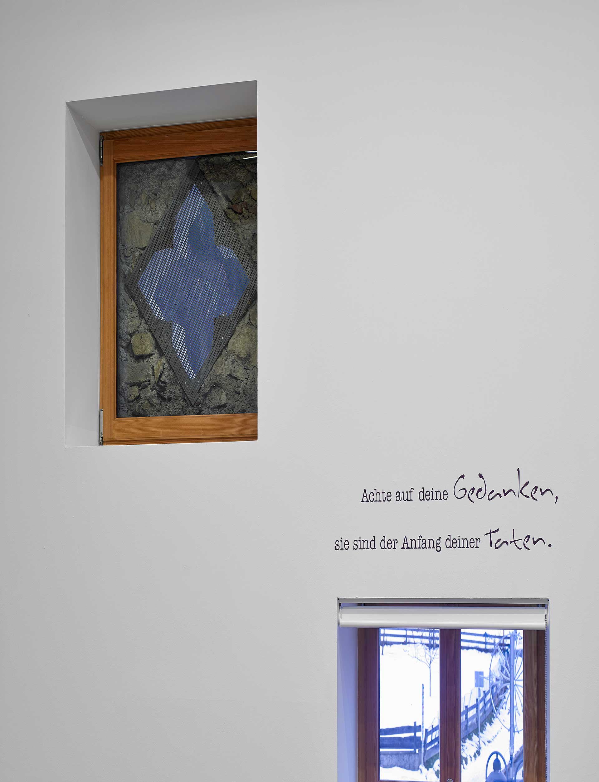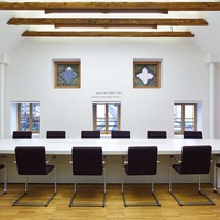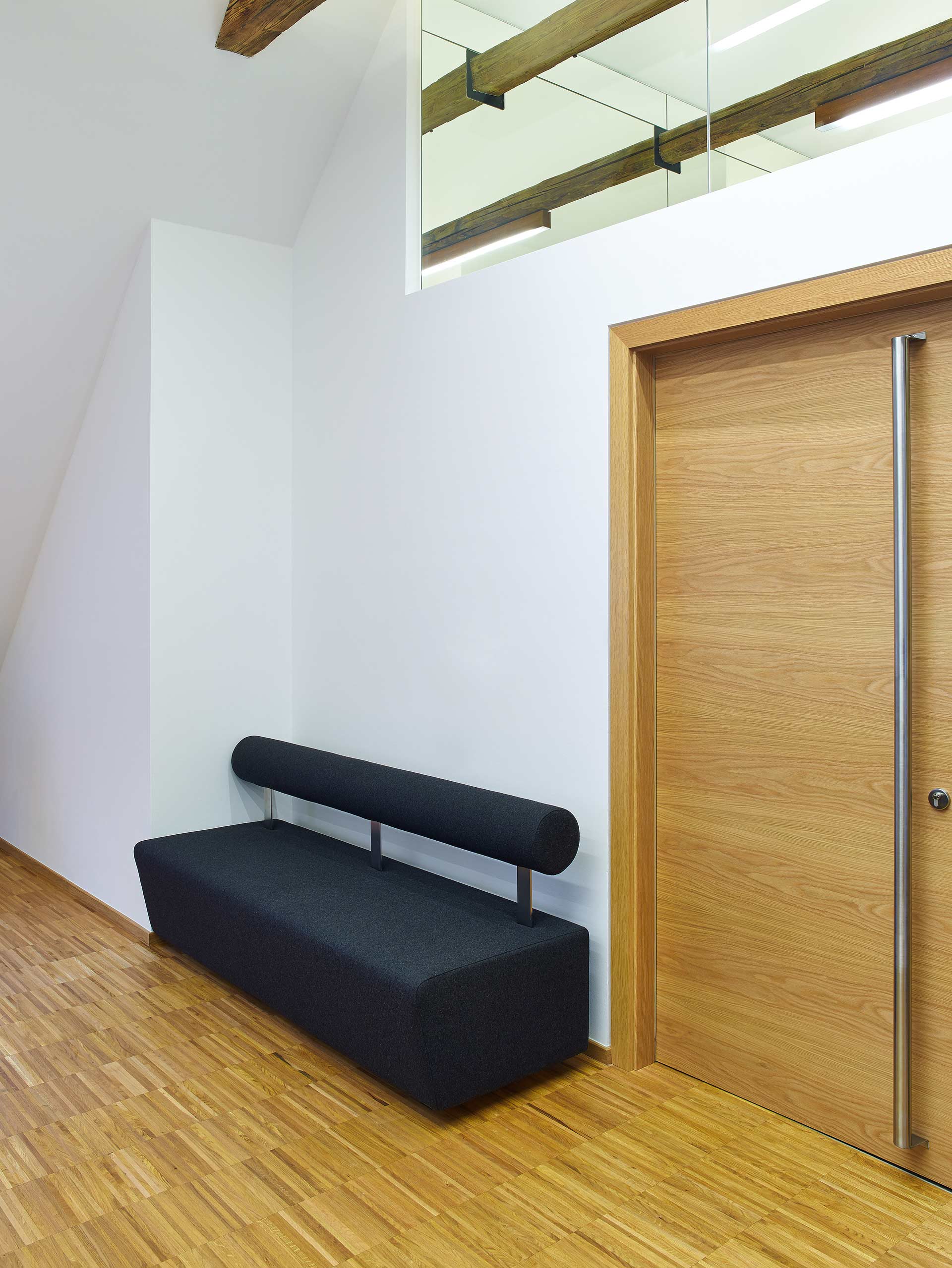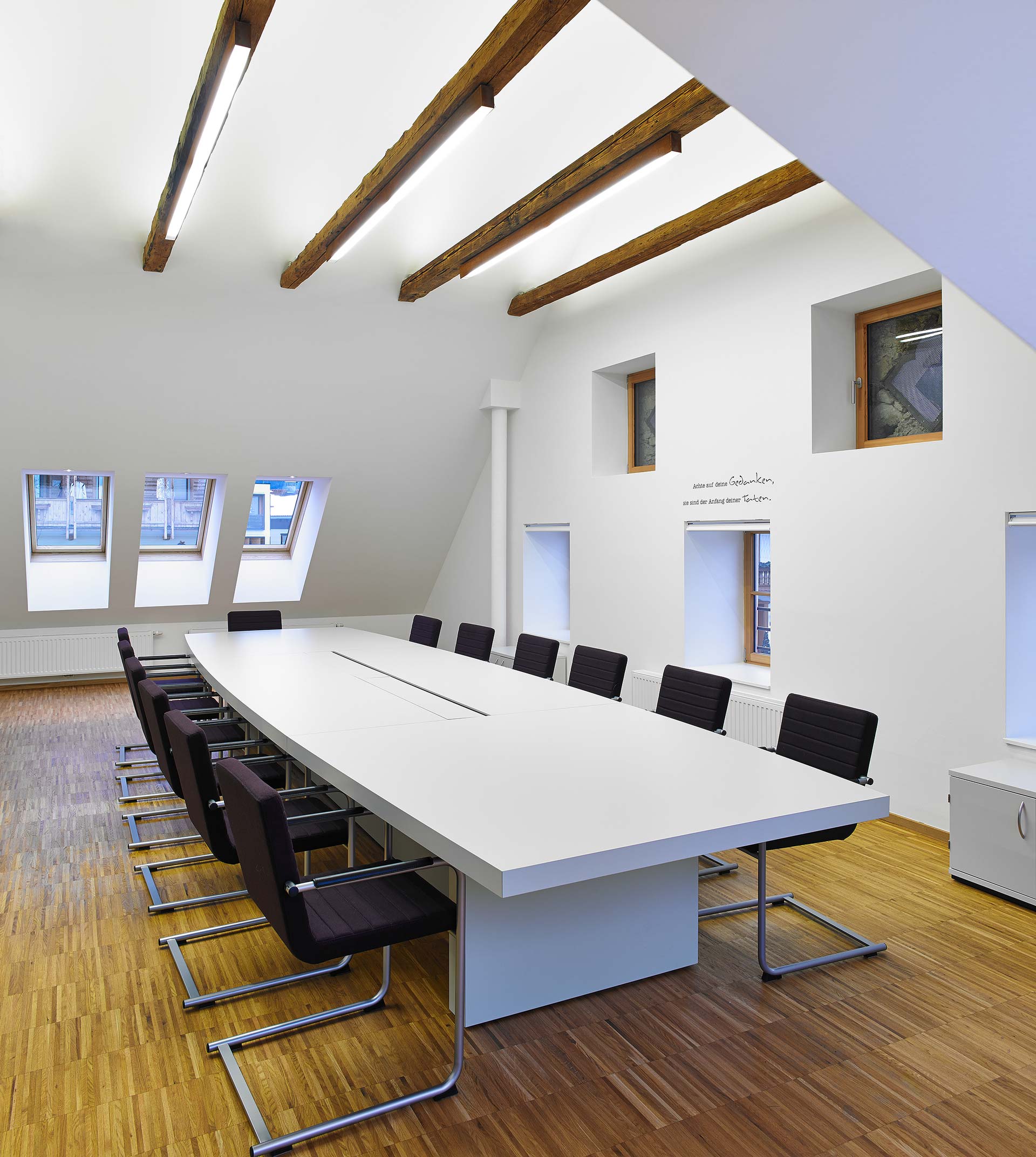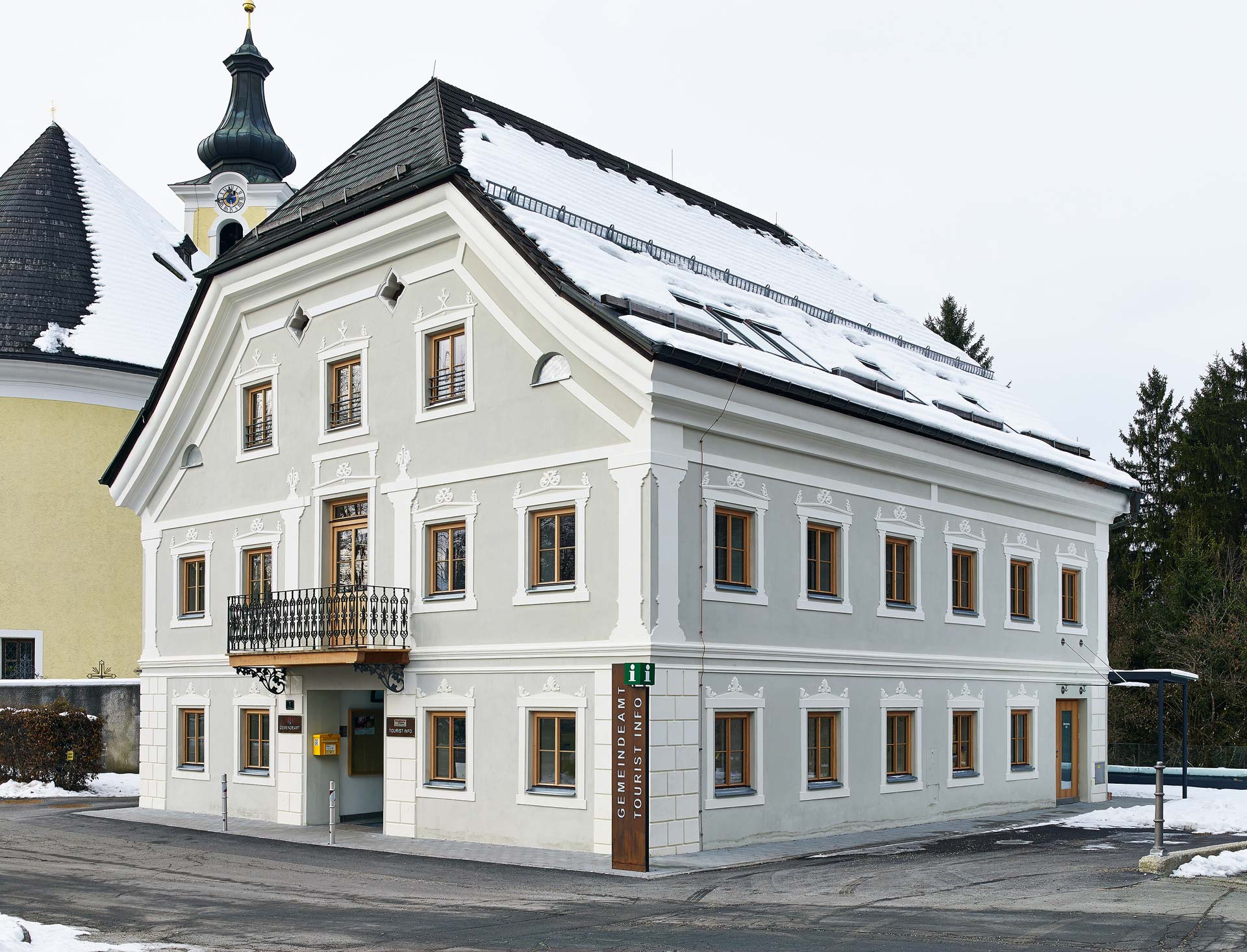 Planung und Auswahl des gesamten Interieurs, Beleuchtung, Bodenbeläge, Wandbeschichtungen, Textilien. Organisation der Restaurierung von bestehendem Mobiliar, Auswahl und Positionierung der gemeindeeigenen Bilder, Wand- Beschichtungen und textile Beschattung. Raumgestaltungs- Konzept: Zeitgemäße Formensprache bei der Entwicklung des Interieurs, umgesetzt in Verbundstoff- Materialien bei den Serienmöbeln, kombiniert mit handwerklich gefertigten Möbeln in heimischen Eichenholz, Bodenflächen in geöltem Industrieparkett, Feinsteinzeug in den Gängen, Fliesen in den Sanitäranlagen. Ausarbeitung des Personenleitsystems. Erstellung des gesamten Oberflächenstruktur- und Farbkonzeptes für alle Räume und Einrichtungen. Örtliche Bauüberwachung mit Qualitäts- und Kostenkontrolle für oben genannten Leistungen.